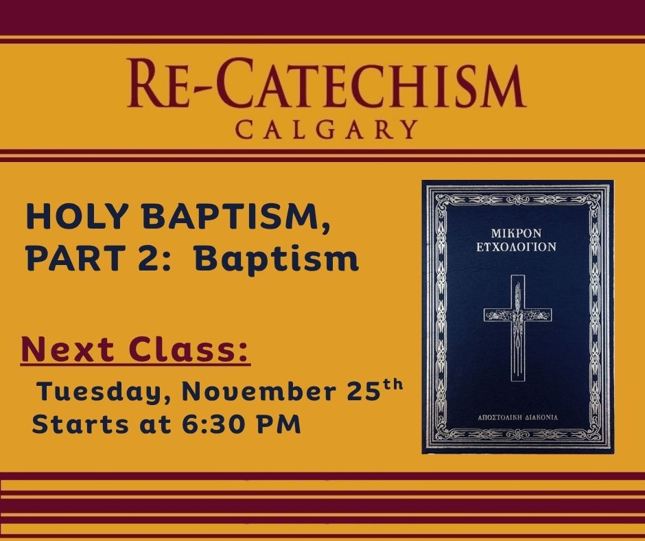 | 24 | 25Church ServiceChurch ServiceTime: 9:00 am - 11:15 am St. Katherine the Great MartyrMatins & Divine Liturgy Re-CatechismRe-CatechismTime: 6:30 pm - 8:30 pm The Euchologion UNVEILEDHOLY BAPTISM, PART 2: BAPTISM 1 Tamarac Crescent SW, Calgary AB T3C 3B7 | 26Greek SchoolGreek SchoolTime: 5:30 pm - 8:00 pm Wed Classes