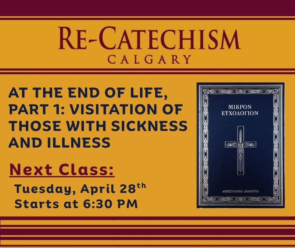 26Church ServiceChurch ServiceTime: 9:00 am - 11:30 am Sunday of the MyrrhbearersMatins & Divine Liturgy 9:00-11:30 am | 27 | 28Re-CatechismRe-CatechismTime: 6:30 pm - 8:30 pm The Euchologion UNVEILEDAT THE END OF LIFE, PART 1: VISITATION OF THOSE WITH SICKNESS AND ILLNESS 1 Tamarac Crescent SW, Calgary AB T3C 3B7 | 29Greek SchoolGreek SchoolTime: 5:30 pm - 8:00 pm Wed Classes